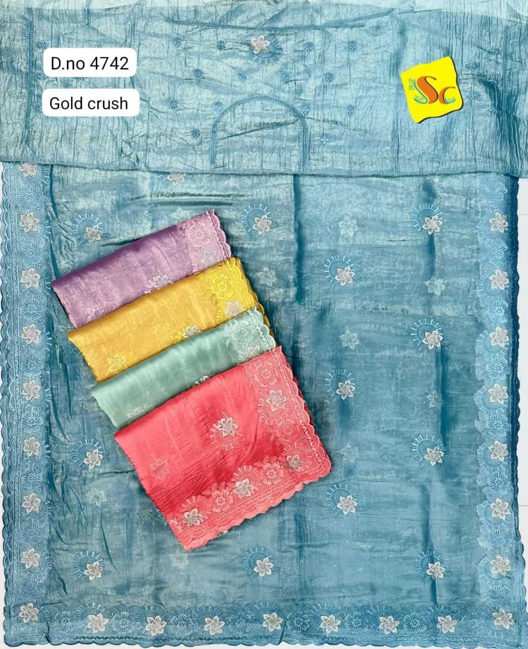 Gold Crush Designer Stone Wedding Saree | Embellished Party Wear