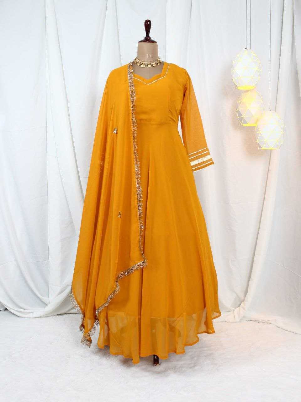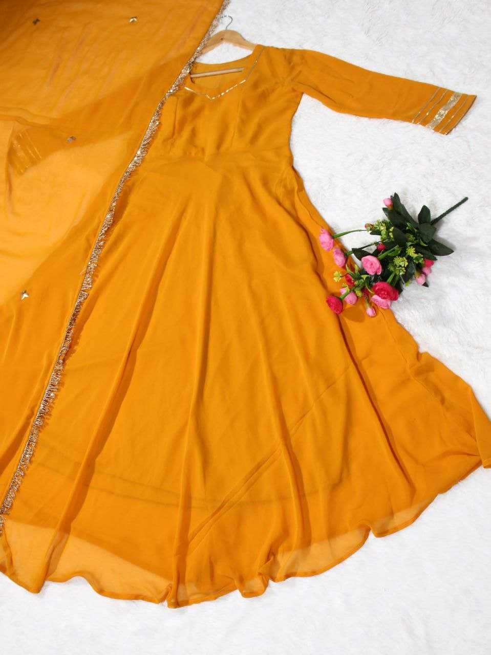Step into elegance with our exquisite collection of Georgette Gowns. These Anarkali-style gowns are designed to add a touch of glamour to your wedding and Haldi outfits. Made from premium Georgette fabric, they offer a perfect balance of sophistication and comfort, making them ideal for any festive or traditional occasion.